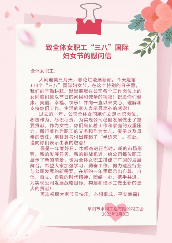 致全體女職工“三八”國際婦女節(jié)的慰問信